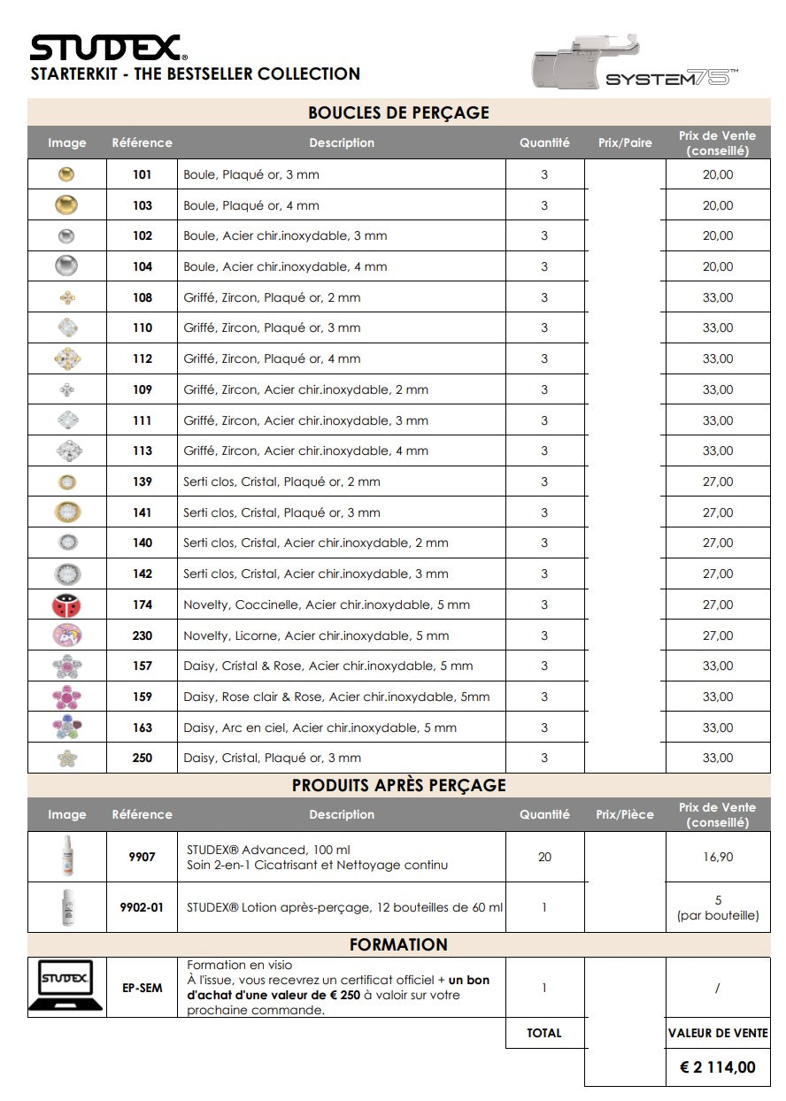 Avec ce starterkit STUDEX® System75, vous disposez immédiatement de tout ce dont vous avez besoin pour commencer à percer les oreilles. Ce starterkit comprend nos 20 boucles d'oreilles à percer les plus vendues, y compris d'adorables modèles pour enfants. Idéal pour percer les oreilles des adultes et des enfants.